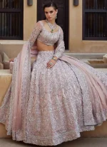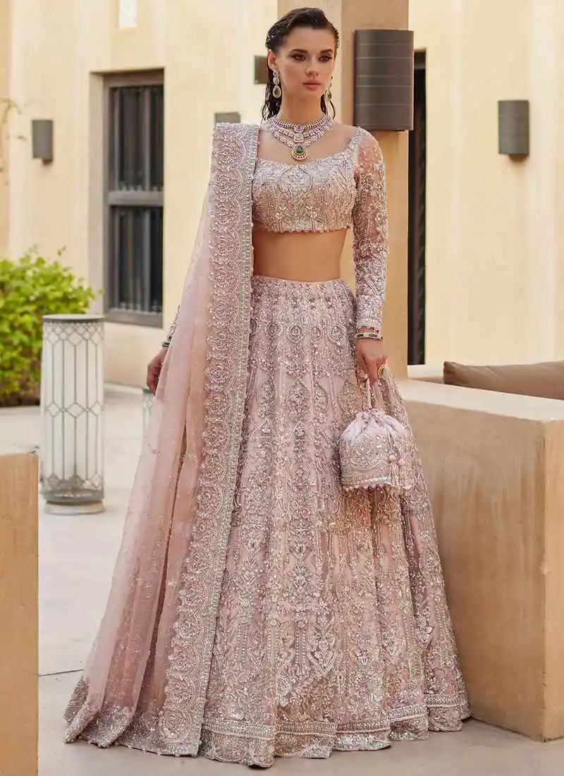 With wedding season soon drawing to a close in the UK, it’s the perfect opportunity to explore our couture collection 2025, where the latest and trendy Pakistani bridal dresses have been featured with free delivery and the best price tags. We have showcased 200+ oh-so-chic wedding clothes for young, desi ultra-modern brides. After exploring our breathtaking selections, we are confident you will receive nothing but compliments from every guest on your big day. Check out this latest creation – Dust Pink, an Indo-Western bridal lehenga choli that is the perfect choice for today’s contemporary bride.