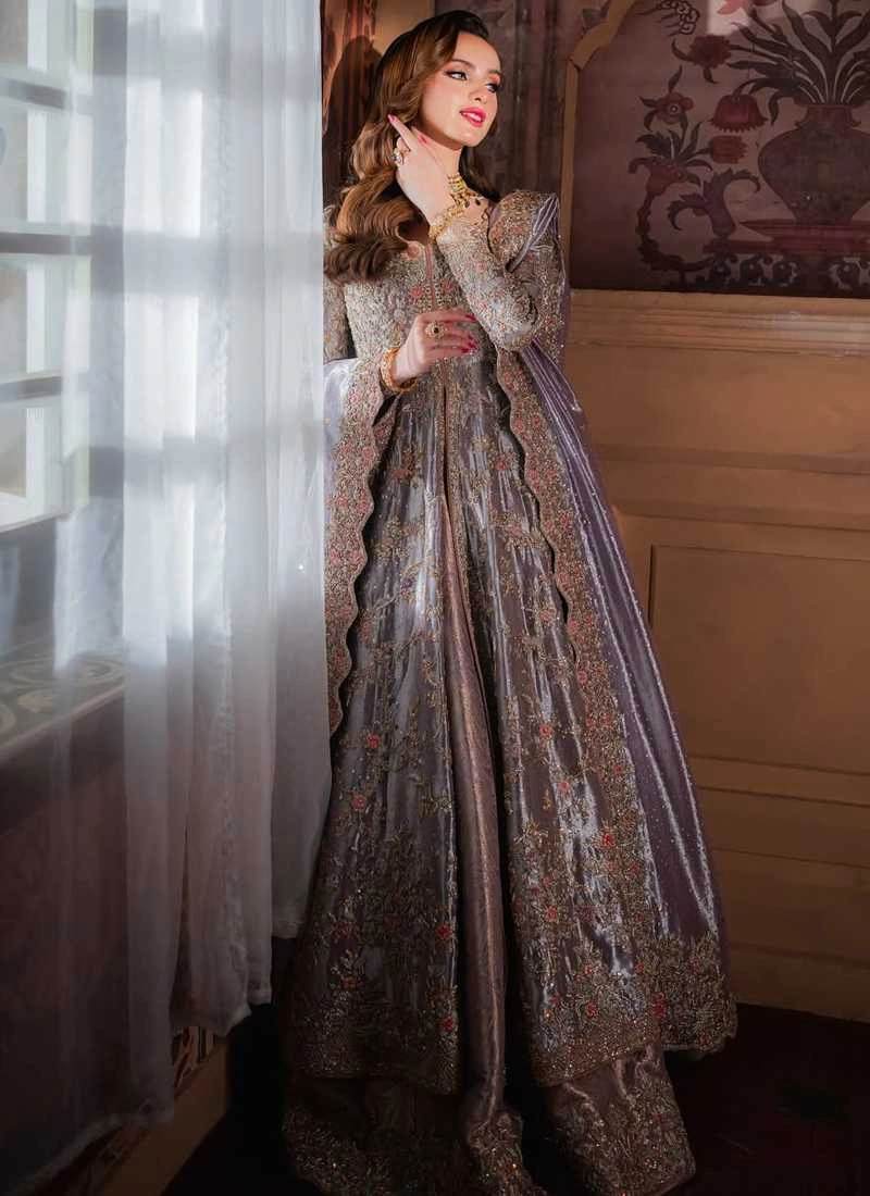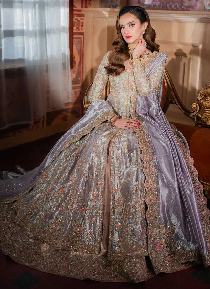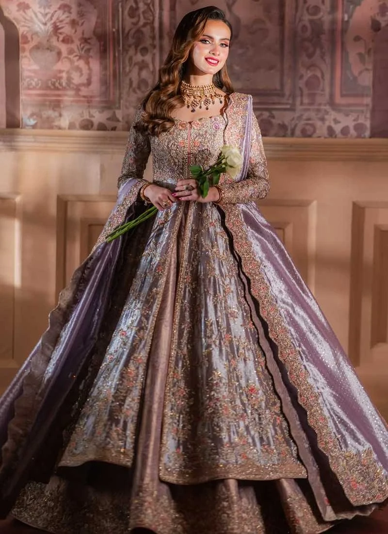Homepage » Bridal Lehenga » Lilac Open Slit Frock with Lehenga