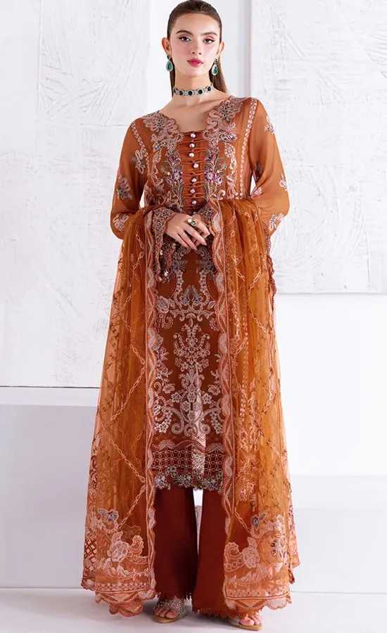 Are you in the UK and ready to elevate your wardrobe with this chic orange shalwar kameez? Look no further than our online e-store, the No.1 shop for Pakistani bridal and wedding guest wear in the UK.