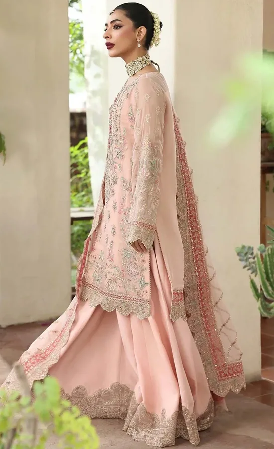 Pakistani Bridal Dressess did an amazing job. The Peach Colour Sharara Suit is a masterpiece!